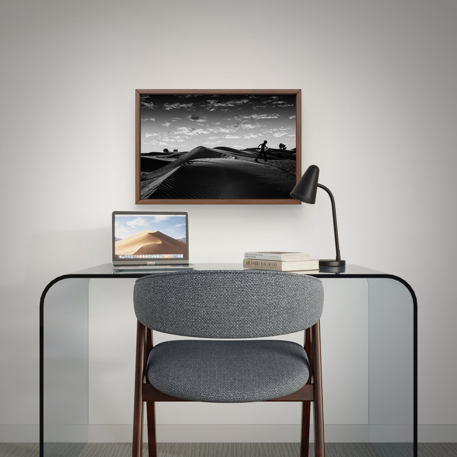 Description: This black and white fine art photograph captures the quiet momentum of tracks across the vast Dubai desert. The minimal composition and soft contrasts evoke a sense of movement, solitude, and contemplation. A striking piece for those who appreciate nature’s patterns and the poetry of open space.